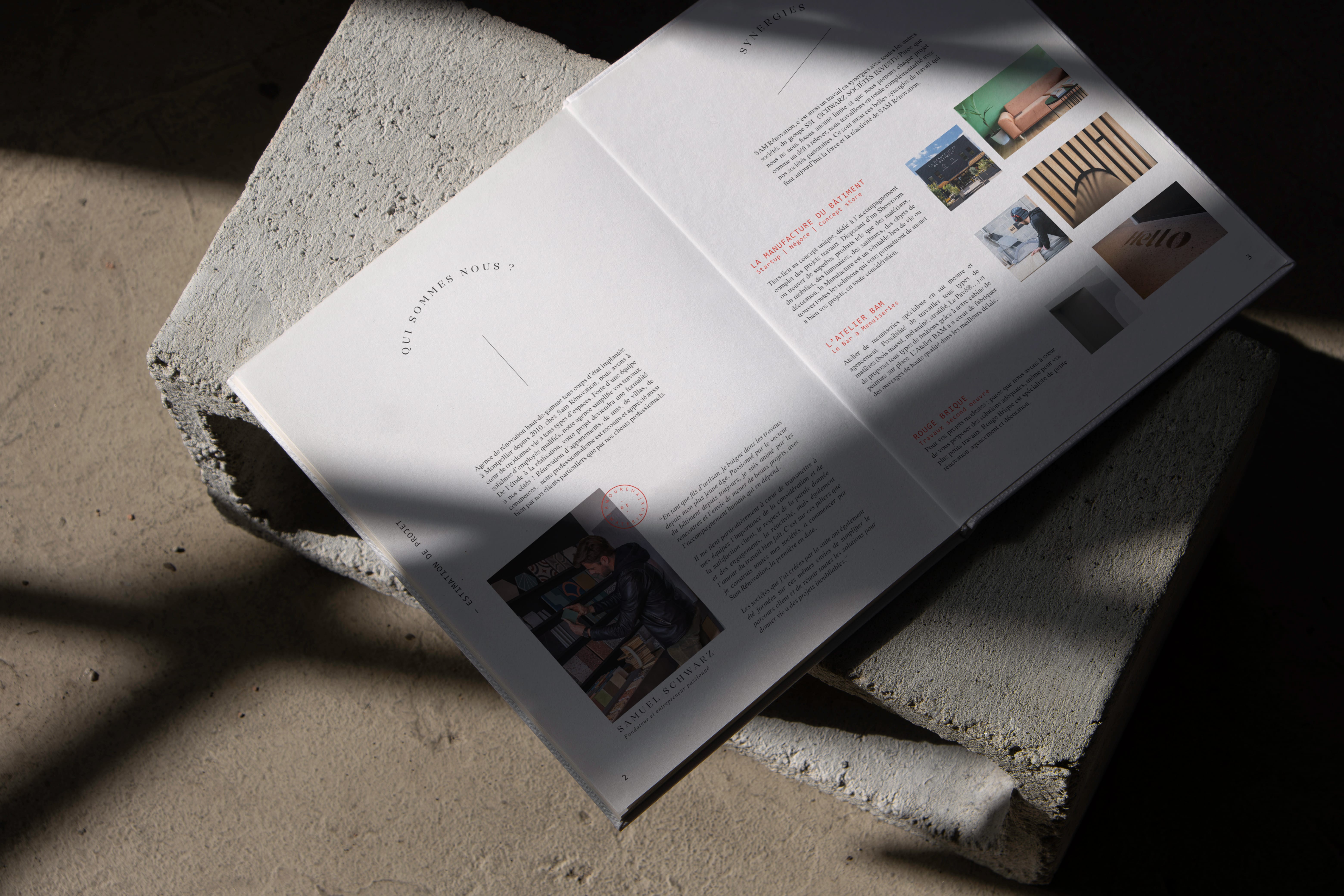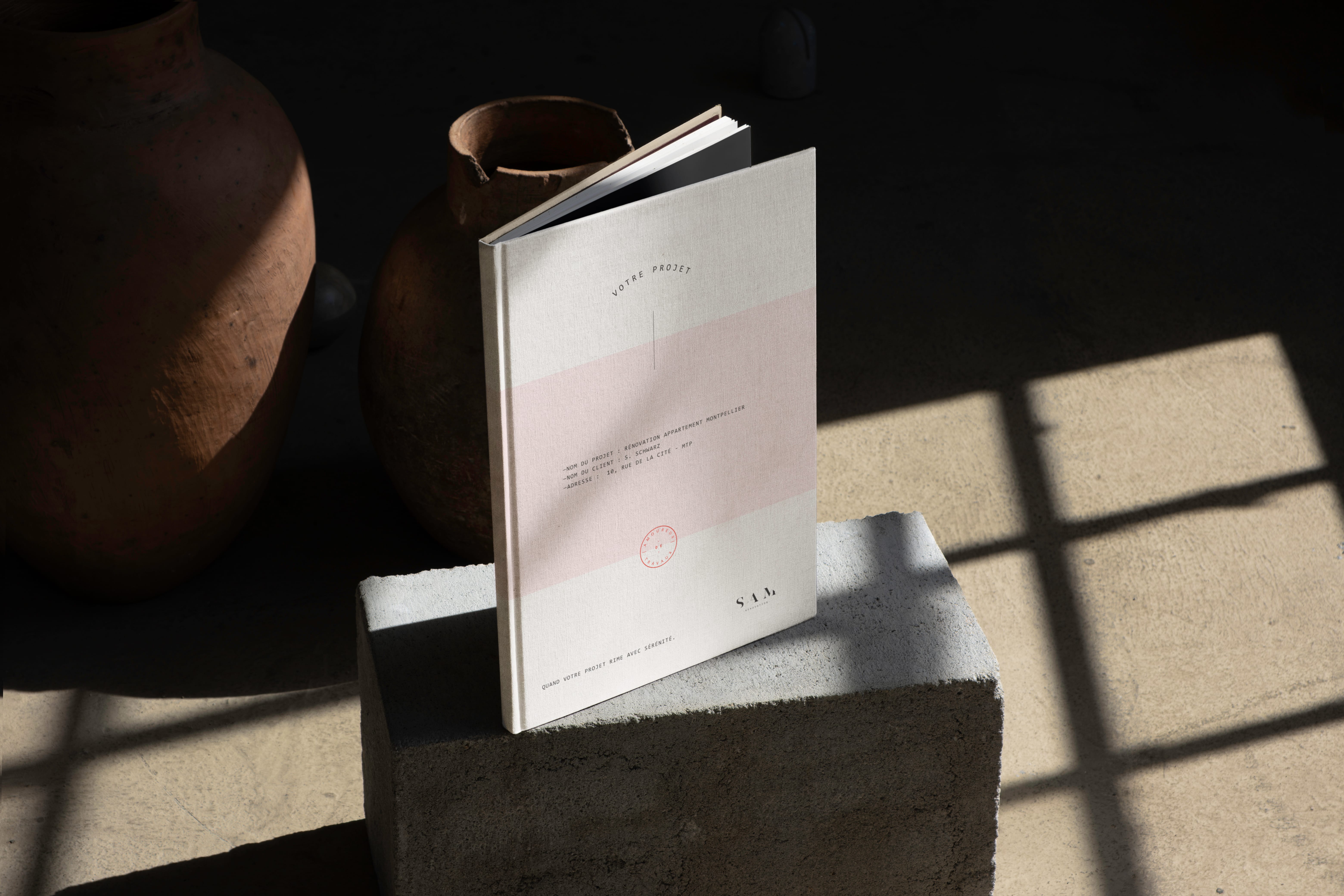 Pour ce projet, j’ai réalisé un document de présentation graphique destiné à SAM Rénovation, une entreprise de référence basée à Montpellier, spécialisée dans la rénovation haut de gamme tout corps d’état.