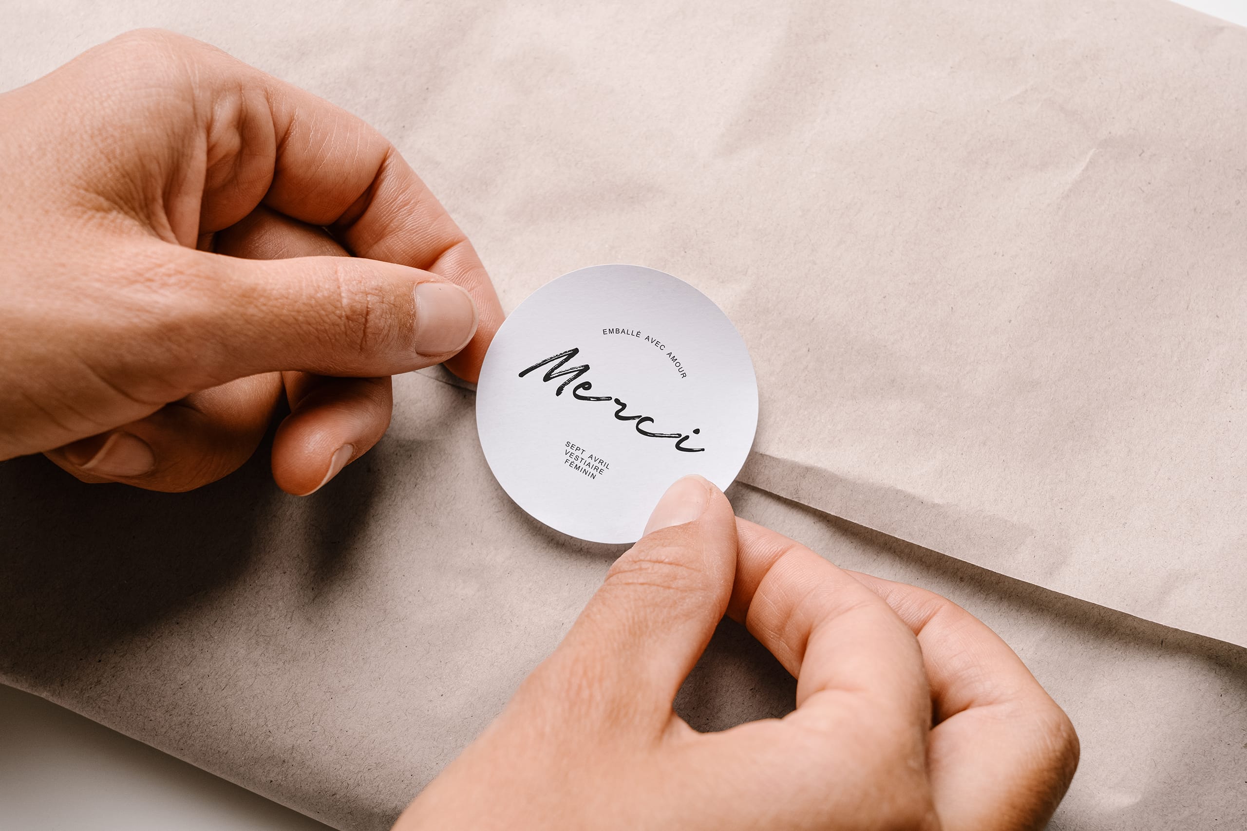 Dès les premières étapes, nos échanges donnent forme à une vision claire. Idées, intentions, inspirations circulent, s’affinent, se structurent. Très vite, elle m’intègre à l’aventure pour imaginer l’identité graphique et l’univers de marque de Sept Avril. Un travail de direction artistique pensé pour traduire la singularité du projet : une mode responsable, sobre, raffinée, loin des codes éphémères.